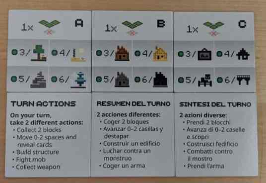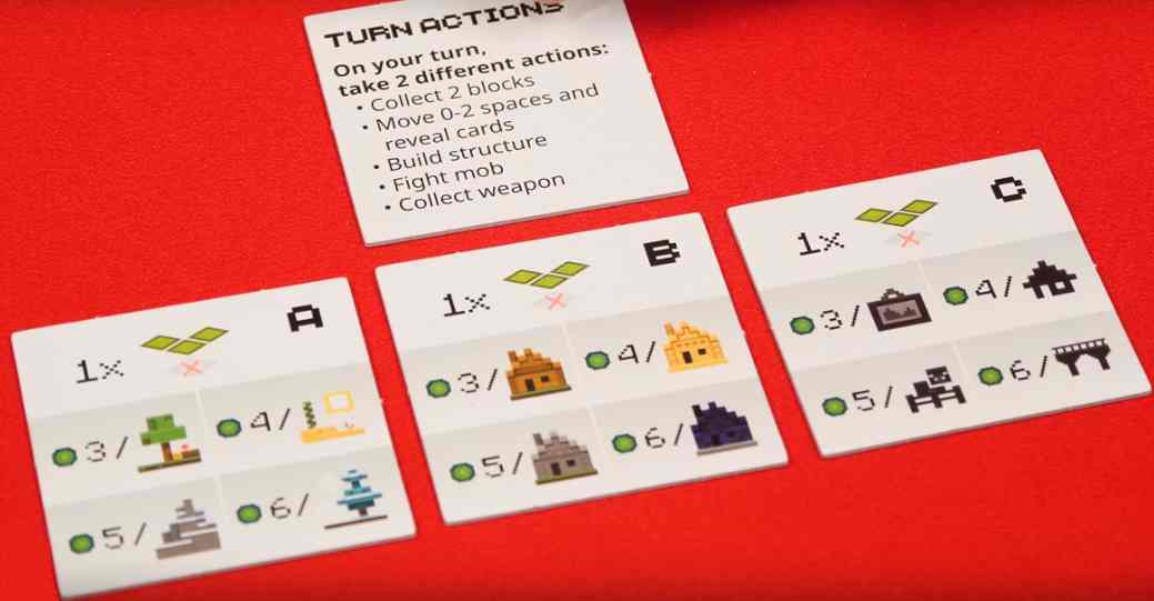Les joueurs déplacent leur personnage pour dévoiler des tuiles (constructions ou monstres) ou acheter des équipements dans les coffres. Ils peuvent aussi miner pour récupérer les blocs nécessaires aux achats.